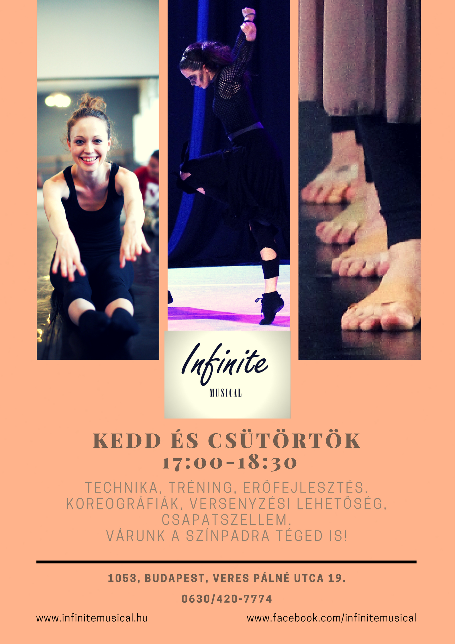 Amit biztosítunk: erős táncalapok, tartás, erőfejlesztés, harmónia, jókedv, csapatszellem, szuper zenék, ismerkedés a legújabb és a legismertebb musicalekkel, koreográfia, versenyzési lehetőség!